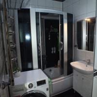 Варианты дизайна ванной комнаты в хрущевке с заменой громоздкого резервуара на душевую кабинку с глубоким поддоном, в котором стирают и купаются сидя, тоже хороши. Треугольные ванны с функциями джакузи – еще один способ оптимизации пространства. Это максимум комфорта и релаксации на небольшой площади. В продаже есть даже мини-бассейны с подиумом, которые поместятся в «хрущевскую» ванную. Но, кроме этого подиума и пары ступенек прямо от порога, туда больше ничего не поместится.