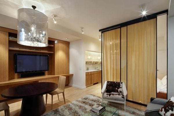 Представленные фото служат отличным наглядным примером того, как возможно оформить идею и преподнести разделение, не ущемляя площадь. Большой выбор вариантов, при помощи которых совмещение зон в одной комнате не создает неудобств хозяевам. Гармонизация свободного пространства при помощи перестановки мебели и правильного освещения – способ для создания идеальной атмосферы.