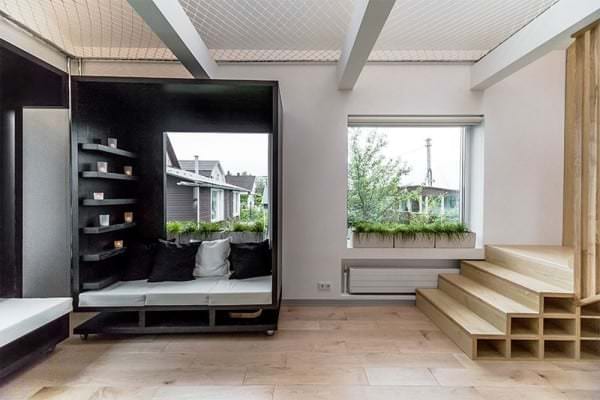 Многофункциональная мебель представляет собой один из удобных и практичных способов решения проблемы. Стоит отметить, что метод это недешевый и не всегда подойдет людям, ограниченным во времени. Такая мебель экономит место, где днем комната полностью выглядит, как гостиная, а на ночь превращается в уютную спальню для отдыха. Однако вечное складывание и раскладывание мебели занимает много времени и сил.