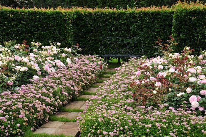 - Использование нескольких видов кустарников позволит расширить пространство.