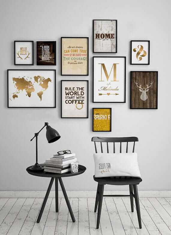 Можно устроить на стене выставку любимых картинок, вставив их в простые рамки