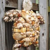 - Панно – в качестве фона используют дерево, фанеру, картон, сетку или мешковину. Иногда его посыпают песком или выкладывают галькой. Ракушки располагаются в хаотичном порядке или выстраиваются в определенную фигуру.